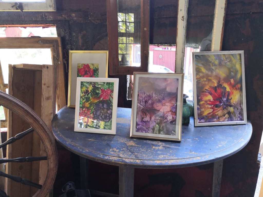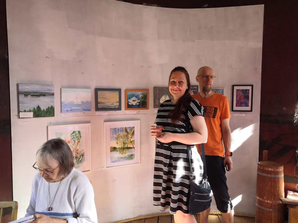 Kolmetoista innokasta maalaria sai kokoontua kyseisenä heinäkuun viikonloppuna nauttimaan taiteentekemisestä hyvässä seurassa pitkän ja poikkeuksellisen, rajoituksia täynnä olleen kevään jälkeen. Yhdistyksen kesäkurssin aiheena oli tällä kertaa akvarellimaalaus, edellisestä akvarellikurssista oli jo lähes 10 vuotta. Osa kurssilaisista oli pitkään harrastaneita, mutta sekä konkarit että aloittelijat ottivat innokkaina vastaan opettajan jakamaa tietoa. Opettaja perehdytti meitä monipuolisesti akvarellimaalauksen tekniikkaan.